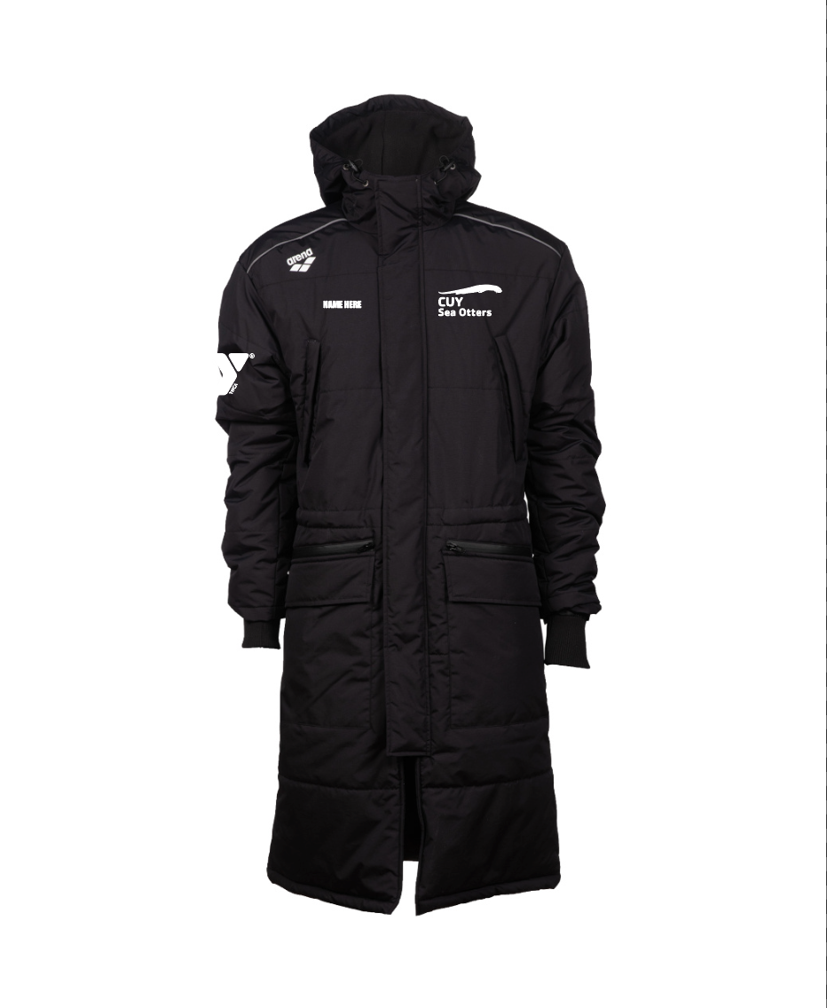 Arena Insulated Team Parka with micropyle lining and ribbed cuff. Double side pockets, hand warmer pockets and additional inner pockets. Elastic draw cord on hood and waistband for better fit adjustment. The CUY logo is embroidered on the left side and the Y is embroidered on the left arm. All jackets include the swimmers name embroidered. Embroidery may take 3-4 weeks.