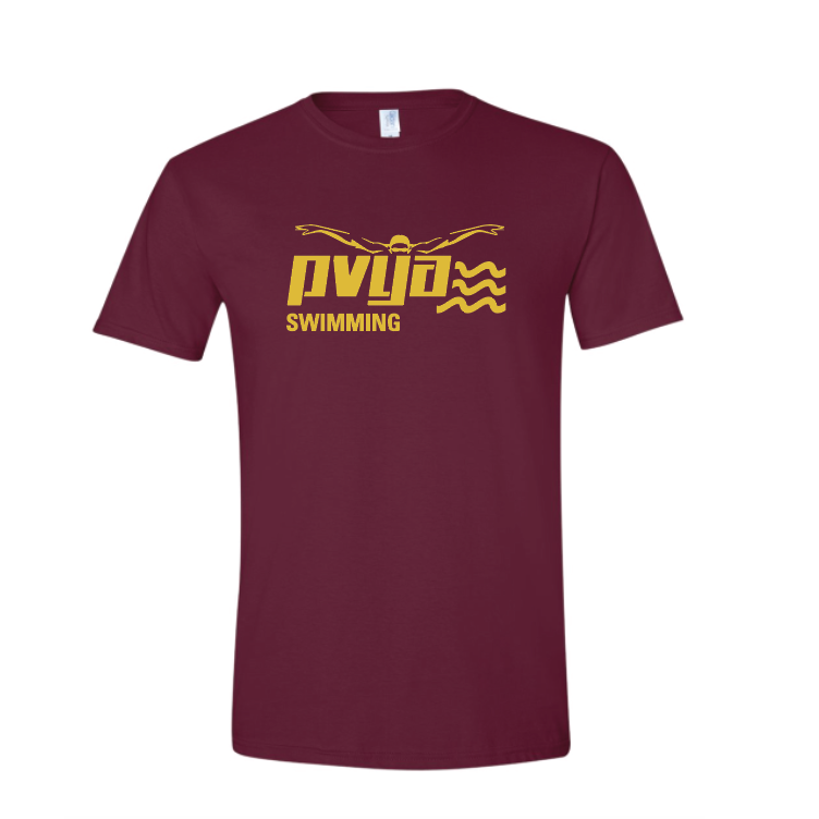 PVYA Swimming T-Shirt. Maroon cotton t-shirt available in Youth Small to Adult 2XL.