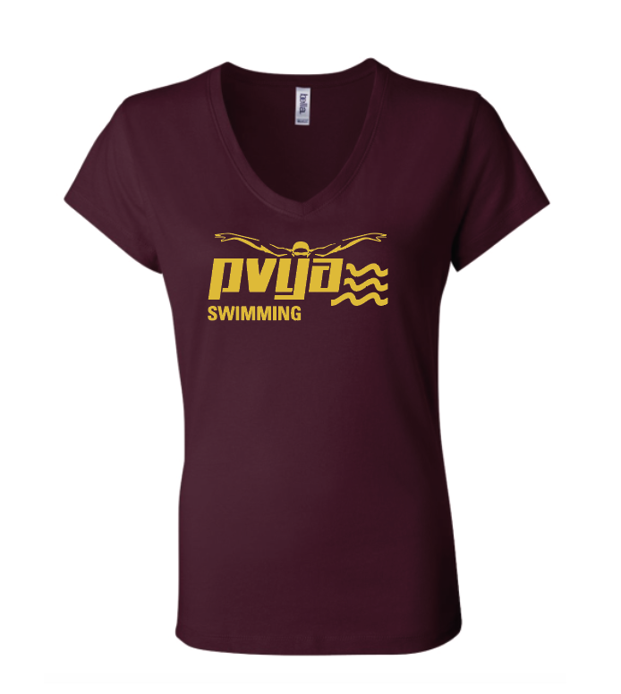 The PVYA Swimming Ladies V-neck is made to order. It comes in women's small-2XL.