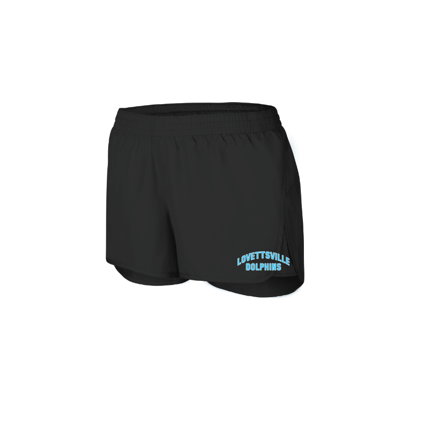 DESCRIPTION: Shell is 100% polyester micropoly Inserts are 100% polyester mesh Lining is 100% polyester wicking crepe Liner wicks moisture Low rise, covered elastic waistband with inside drawcord Inside key pocket Inner brief with leg elastic Contrast color inserts and binding 4-inch inseam Girls inseam