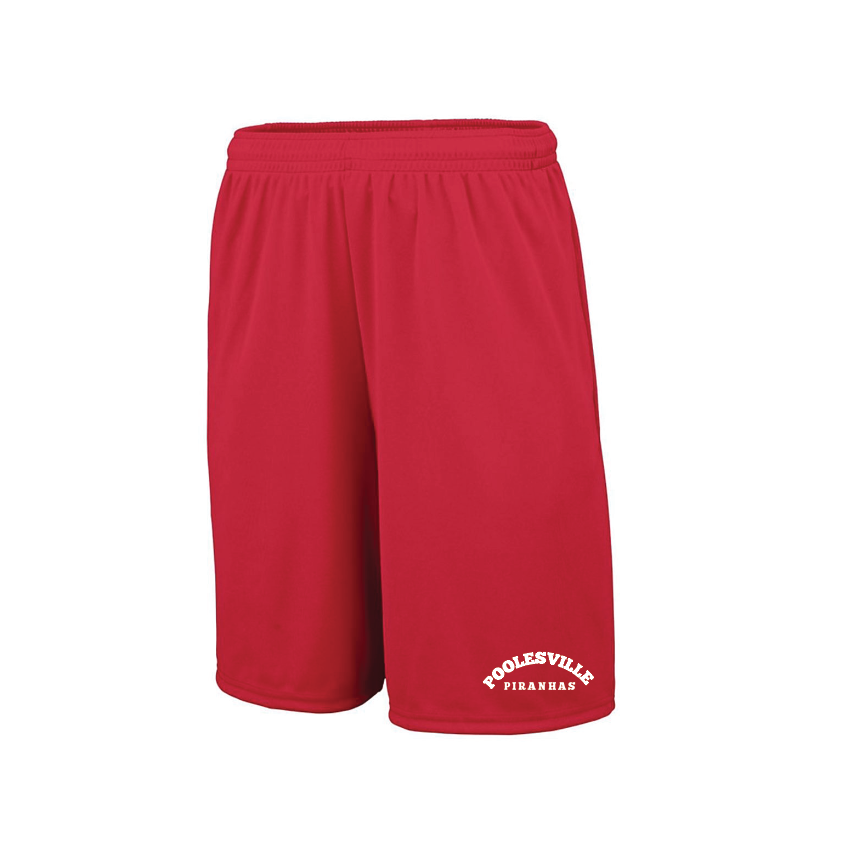 DESCRIPTION: 100% polyester wicking knit with color secure® technology that helps prevent dye migration Wicks moisture Odor resistant Tagless label 2-inch brushed back elastic waistband with inside drawcord Side seam pockets Side vents 8-inch inseam Youth inseam graded