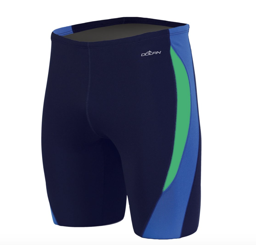 The Whittier Riptides Boys Jammer. It is a Dolfin 100% polyester jammer . We do recommend the the swimmer tries the suit on and is fitted properly. The sizes range from a 22-38
